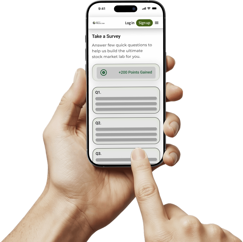 Sign up and take a short survey to help us become better and in return earn points to climb the Nifty Predictor leaderboard.